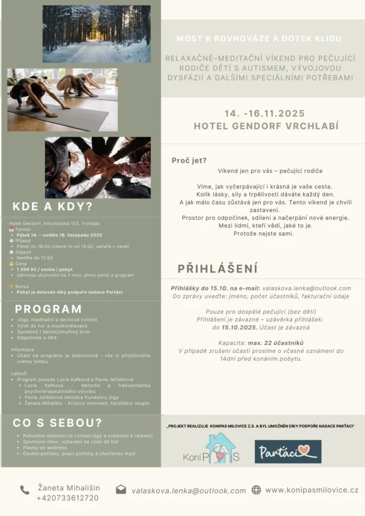 Tyto akce nejsou terapií, ale podpůrným formátem pro změnu perspektivy a regeneraci.